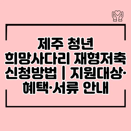 제주 청년 희망사다리 재형저축은 제주도에 거주하는 청년들이 주택 구입 자금을 마련하기 위해 저축하도록 돕는 재정 지원 제도입니다. 일정 금액을 저축하면 정부 및 지방자치단체에서 추가 지원금을 받을 수 있습니다.